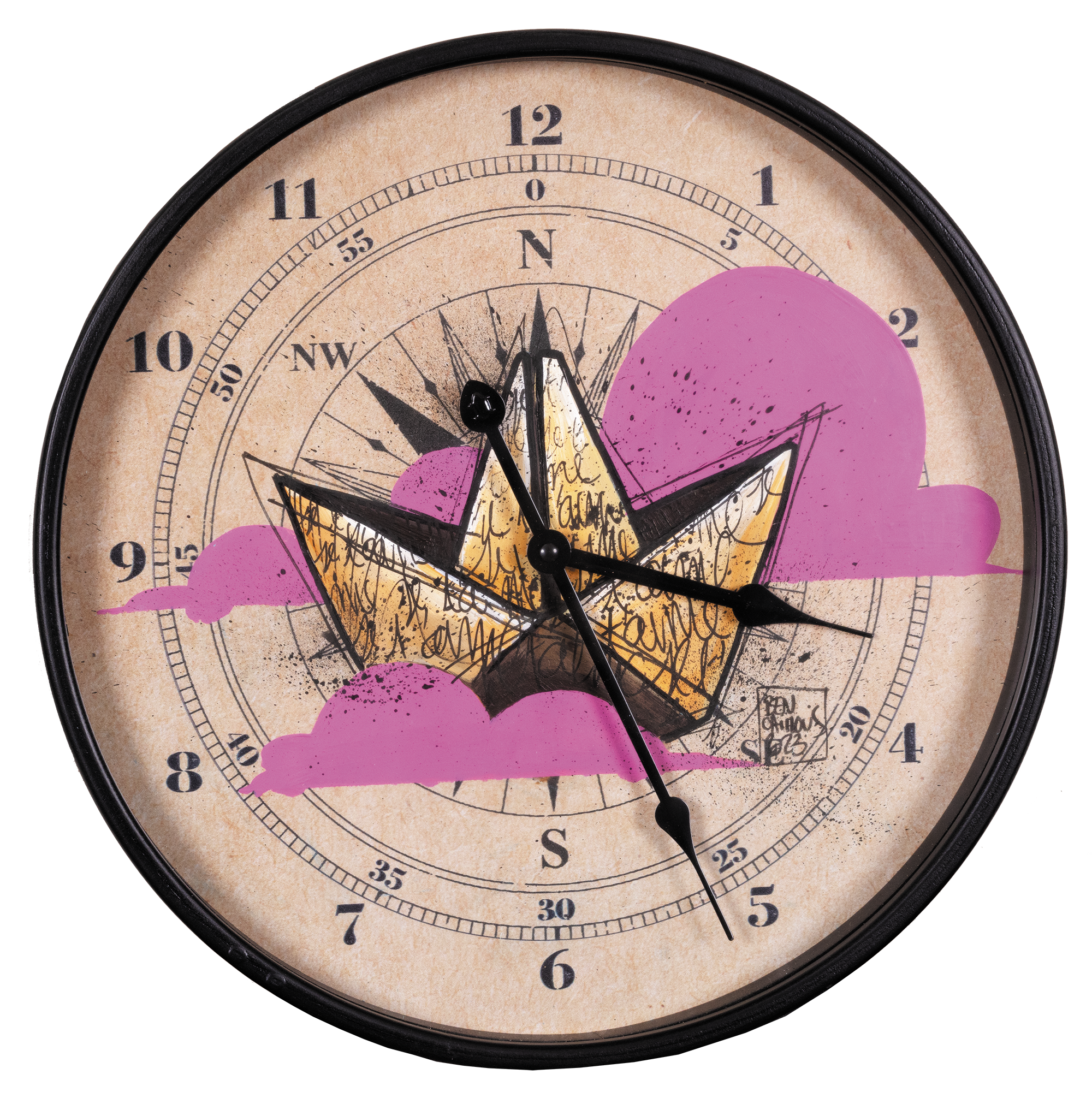 « Bateau Papier » Oeuvre unique originale sur Horloge diamètre 38 cm peinte et signée de la main de l’Artiste BEN CAILLOUS