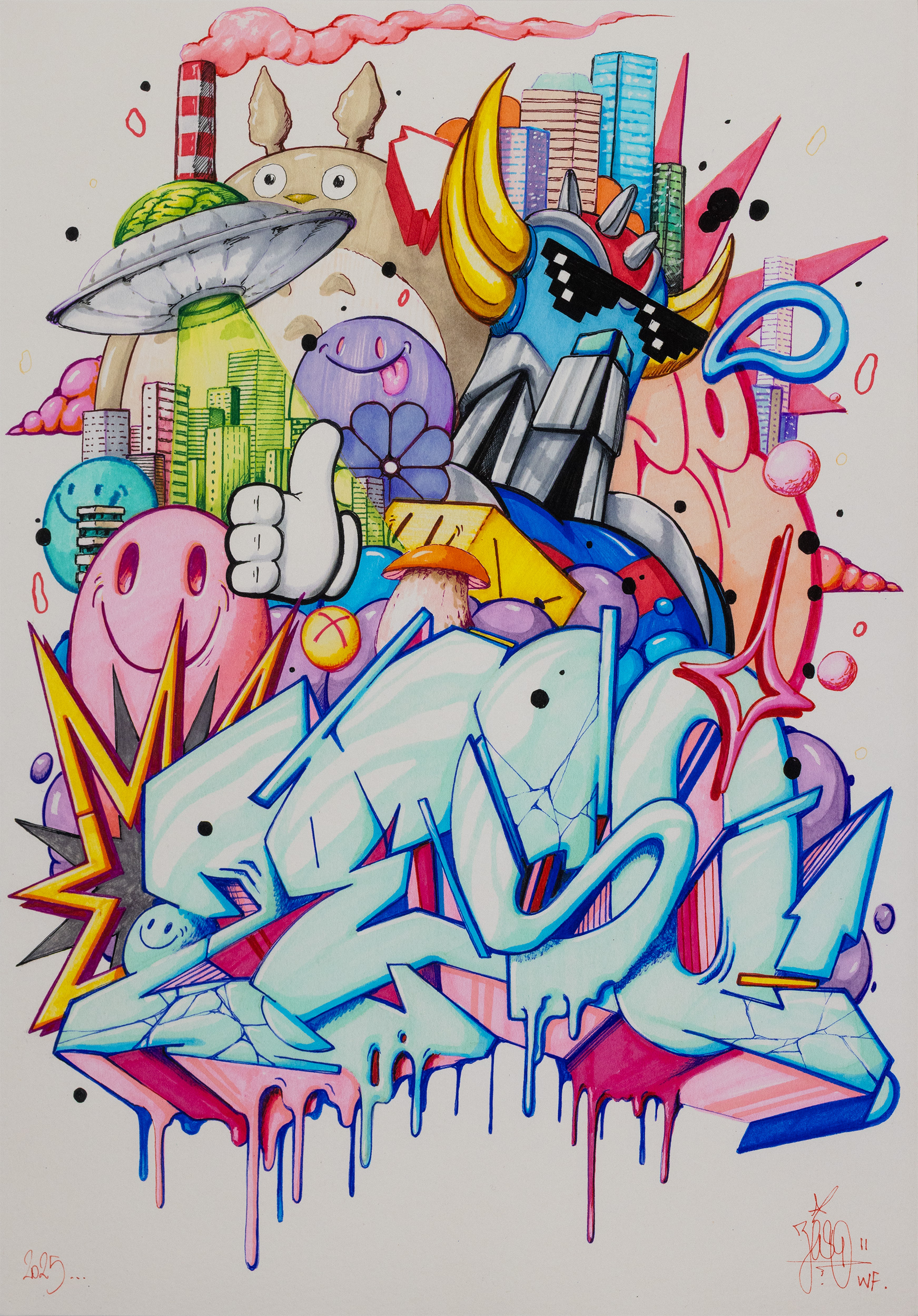 « Fulgurograff » Print impression digitale de dessin original, dimensions 41 cm x 30 cm, non encadré,