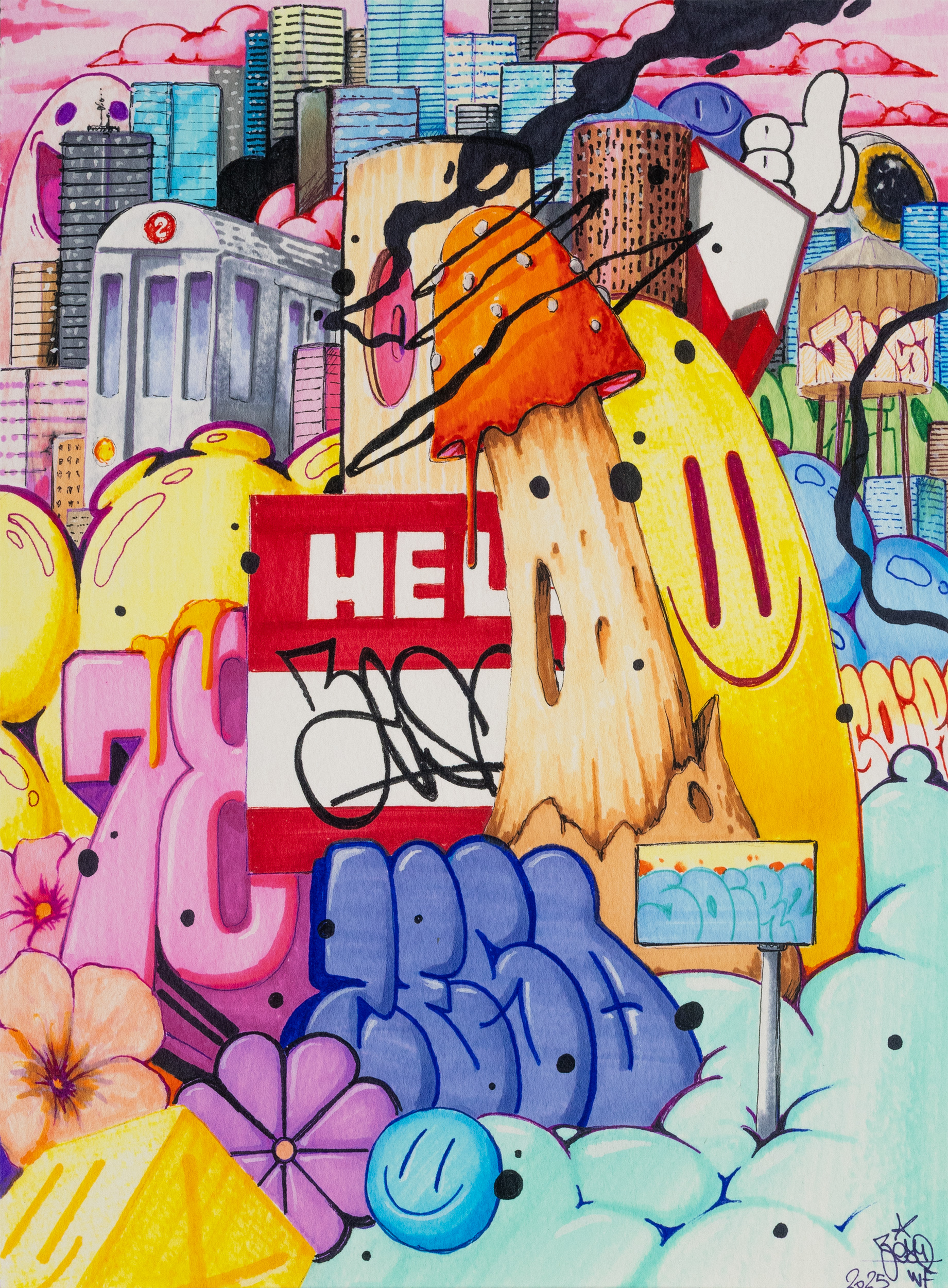 « Skyline » Print impression digitale de dessin original, dimensions 29 cm x 22 cm, non encadré,