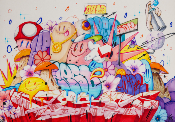 « The Homies » Print impression digitale de dessin original, dimensions 30 cm x 41 cm, non encadré,