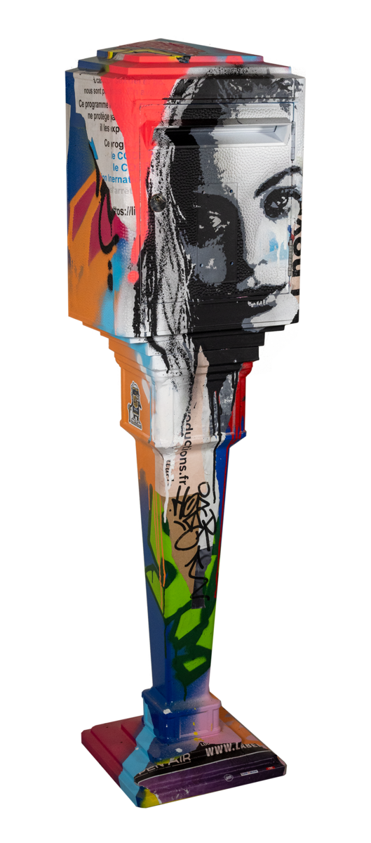 Technique mixte sur Boîte aux Lettres originale de la Poste française